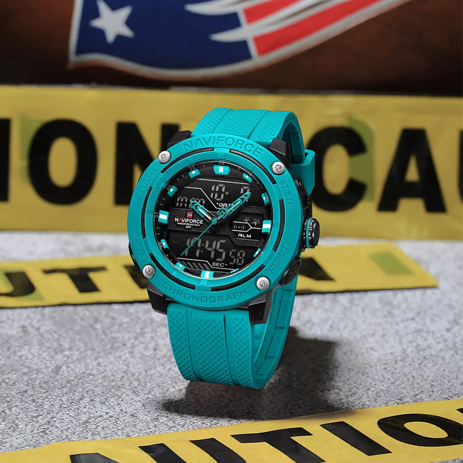 With its bold design and high-quality materials, this timepiece is more than just a watch—it’s a statement. The scratch-resistant dial window ensures clarity, while the durable silicone strap delivers all-day comfort. Its 50M water resistance lets you confidently wear it in rain, during handwashing, or while enjoying light water activities.