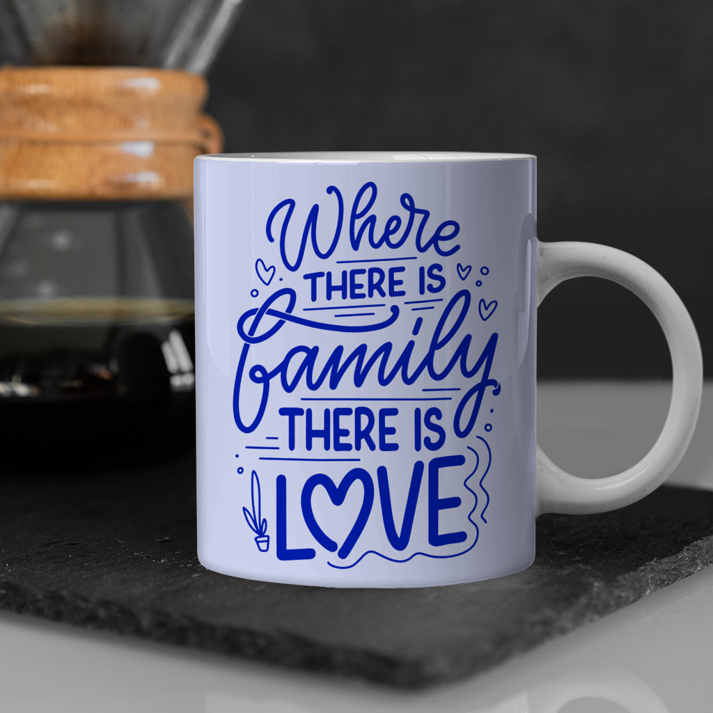 Where There Is Family There Is Love 11oz Mug - Inspirational Affirmations Ceramic Mug - Happy Family Coffee and Tea Cup