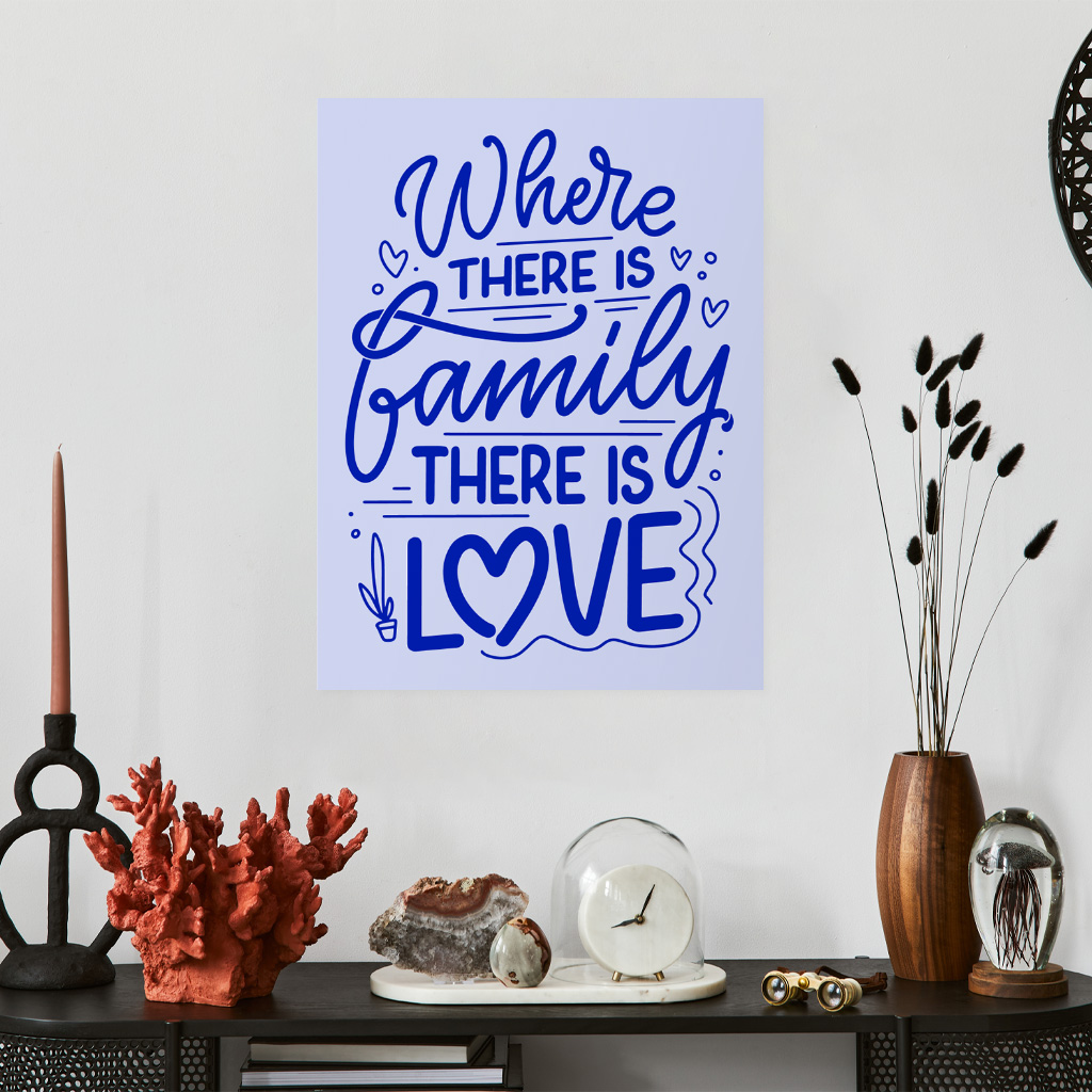 Where There Is Family There Is Love Matte Poster – Inspirational Affirmations Wall Art Print – Happy Family Home Decor