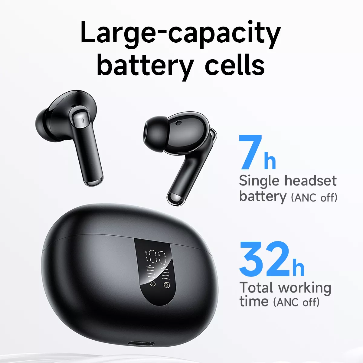 These earbuds come with a compact charging case featuring a digital LED display to easily monitor battery levels. Each earbud provides up to 7 hours of playback, or 6 hours with ANC activated, while the 350mAh charging case extends listening time throughout the day. With dual-device connection and master-slave switching, you can seamlessly manage calls, music, and voice assistant commands like Siri.