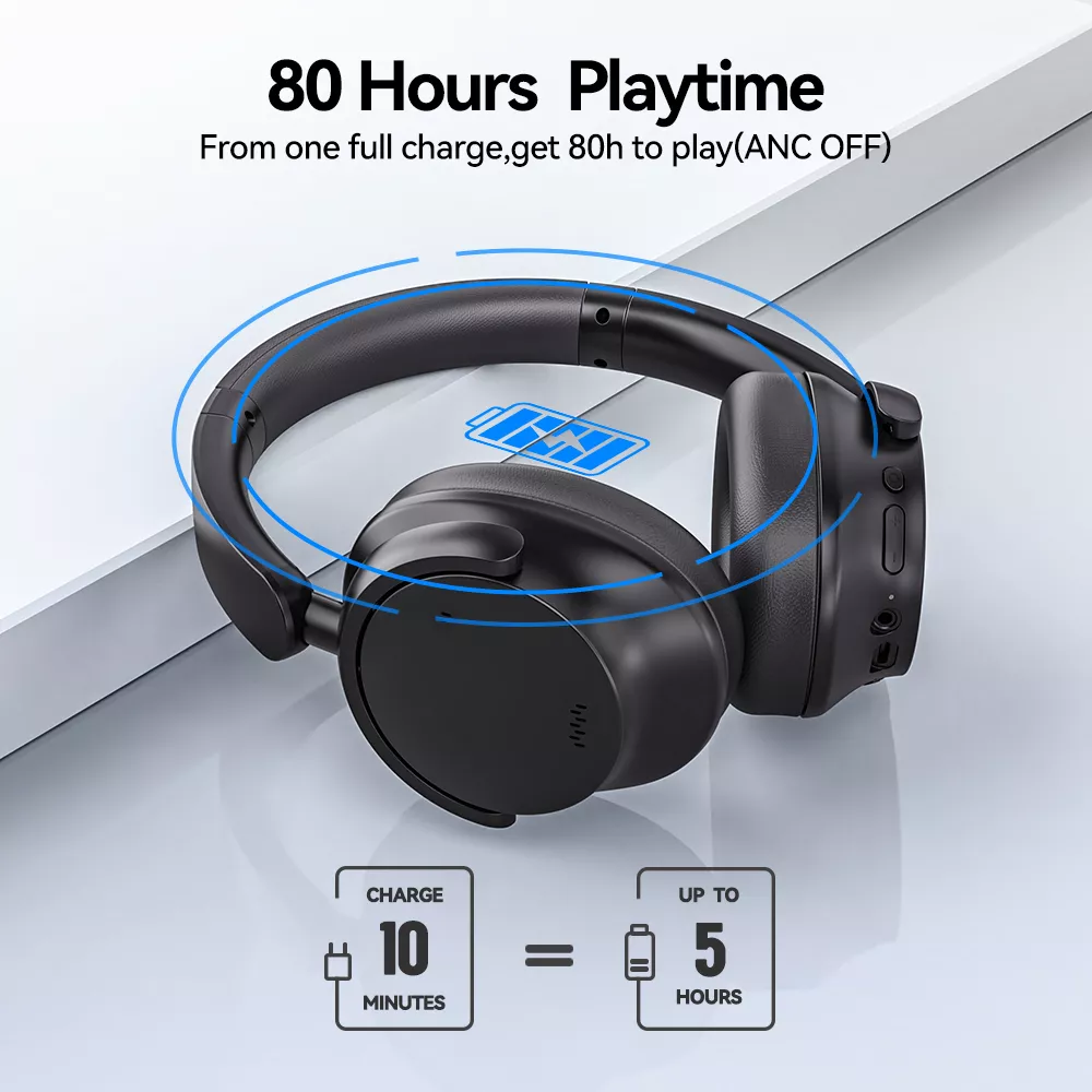 Equipped with Bluetooth 5.3, these headphones offer a fast and stable connection for seamless audio streaming. With up to 80 hours of playtime on a single charge (65 hours with ANC on), you’ll never have to worry about running out of music during long trips or work sessions. The headphones also support wired and wireless modes, giving you flexibility for different scenarios.