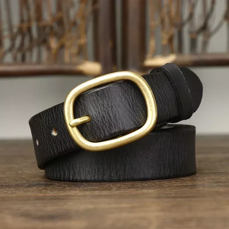 Women’s 2.8CM Genuine Leather Belt with Brass Buckle