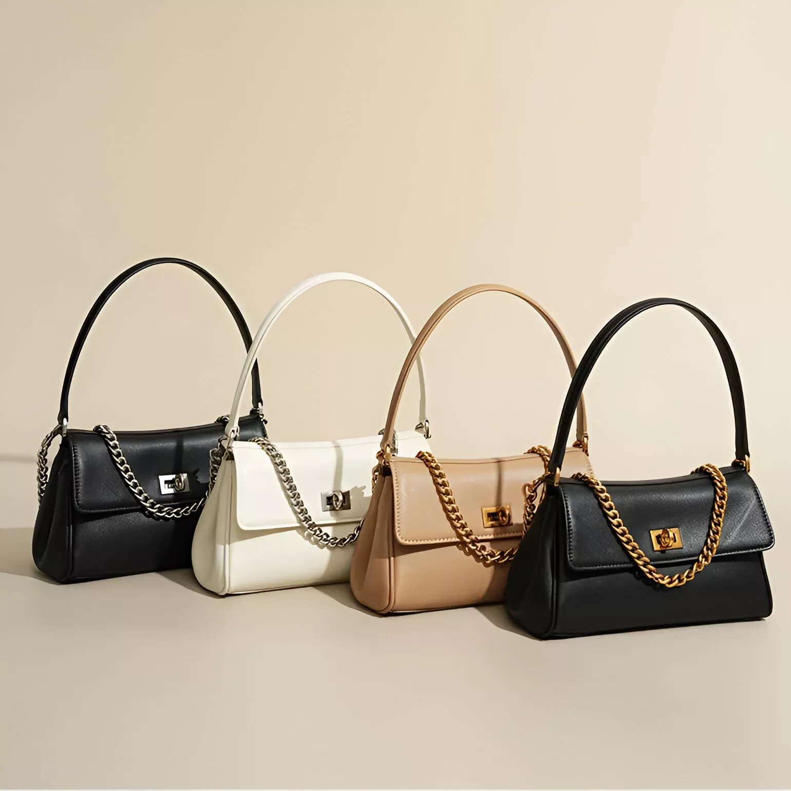 What makes this bag truly special is the combination of genuine cowhide leather with a refined chain accent, delivering a high-end look that stands out without being overwhelming. The soft texture and practical interior details ensure comfort and functionality, making it an essential accessory for every wardrobe.