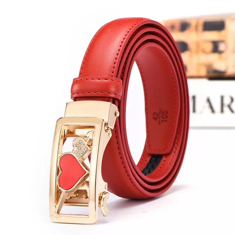 Women’s Genuine Leather Belt with Heart Diamond Automatic Buckle