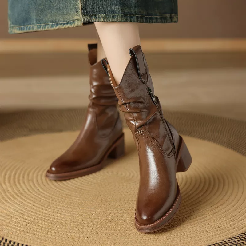 These ankle boots are more than just footwear—they are a statement. The combination of classic retro style, plush lining, and sturdy heel makes them perfect for everyday wear in cooler seasons. Their solid construction ensures long-lasting use, while the soft interior keeps your feet comfortable all day. The unique western-inspired design adds a fashionable edge to any outfit, making these boots an essential addition to your wardrobe.