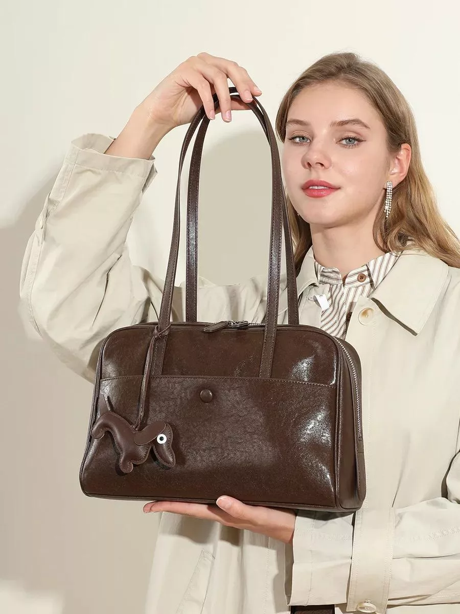 Step into the colder months with a handbag that radiates timeless elegance. This autumn and winter women’s pillow bag is crafted from premium vegetable-tanned cowhide, offering a naturally beautiful texture that only gets better with age. Its unique bowling-inspired shape gives it a distinctive silhouette, while the rich leather tones make it the perfect seasonal accessory for your wardrobe.