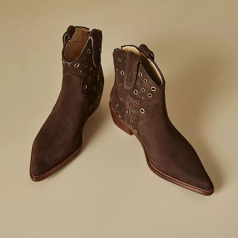 - Stylish Details: Rivet accents and pointed toe design add a modern western edge.