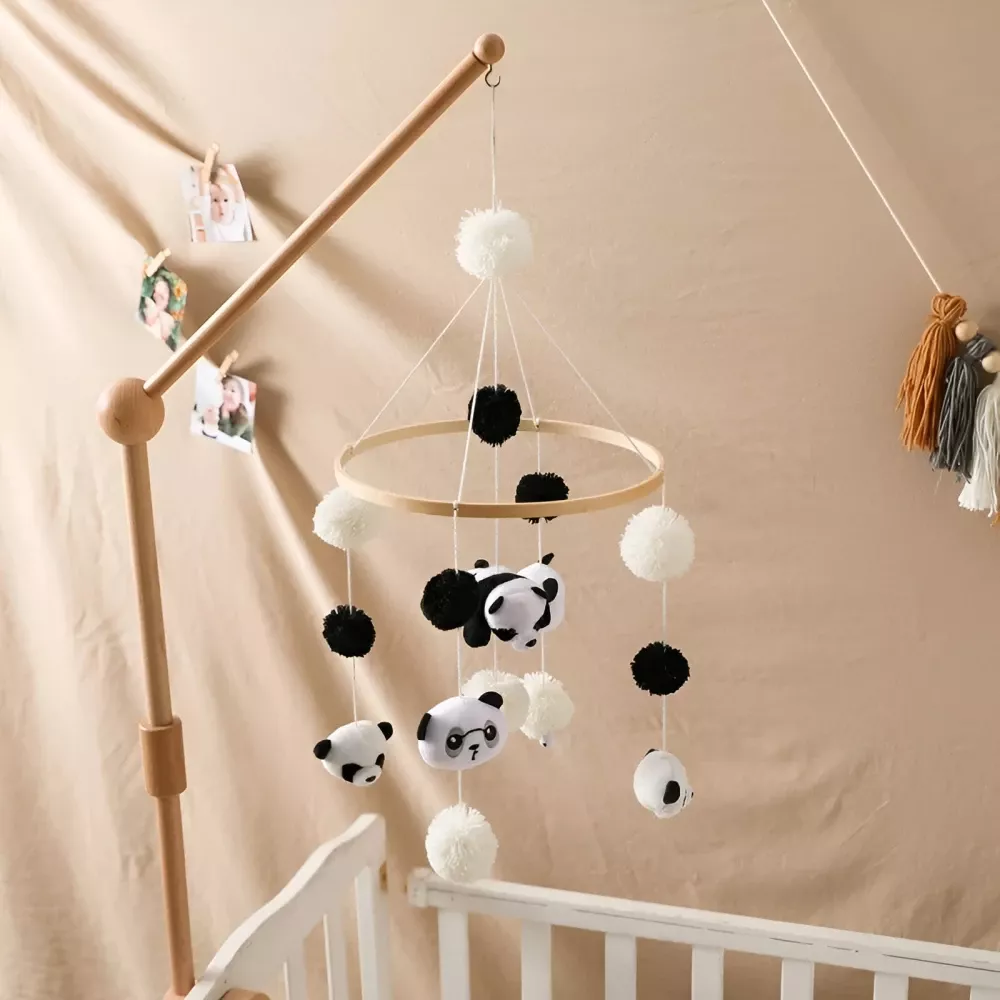 Introduce your little one to the world of sensory play with this charming Wooden Baby Rattle Mobile. Designed for babies from newborn to 12 months and beyond, this adorable panda and brown bear set creates a calming, musical environment right at your baby’s crib or stroller. Made from natural wood, it’s gentle to the touch and safe for tiny hands to explore. The soft melodies from the built-in music box help soothe and entertain your baby, making it perfect for nap time, playtime, or winding down before bed.