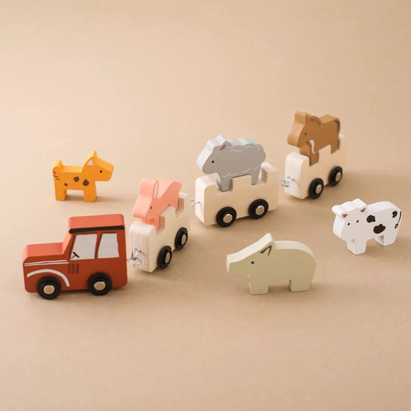 Unlike ordinary toys, this set combines the charm of a classic wooden train with the educational benefits of a stacking block set. The farm animal theme introduces children to different creatures while they enjoy pretend-play adventures. Each block is sized perfectly for small hands, making it easy and safe for little ones to grasp, stack, and arrange. Plus, the pull-along train feature keeps children active and engaged, promoting both physical movement and cognitive growth.